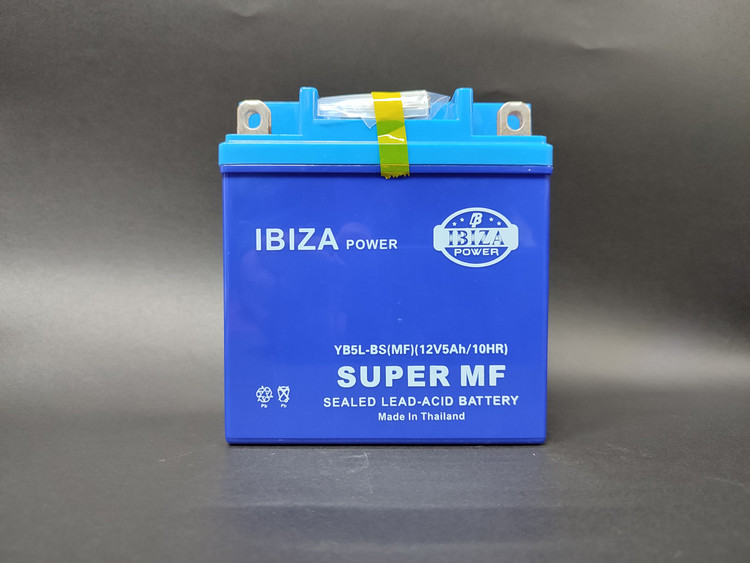 باتری موتور سیکلت ۵ آمپر بلند ۱۲ ولت شرکت ایبیزا پاور تایلند تولید سال ۲۰۲۴ میلادی تکنولوژی ژل باتری مورد استفاده در انواع موتورهای ایرانی و خارجی طول عمر این باتری بین ۳ تا ۴ سال تخمین زده شده است