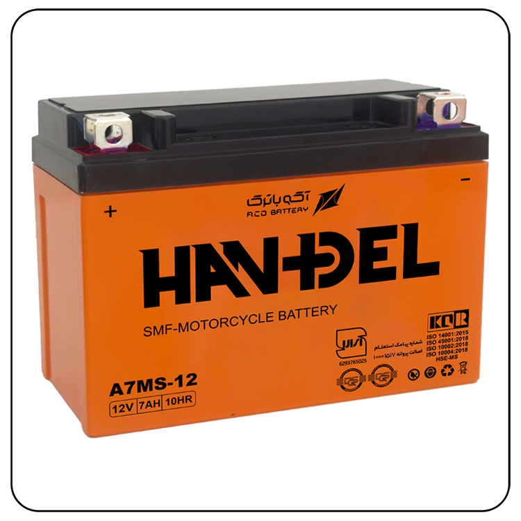 باطری ۷ آمپر کوتاه باریک هندل با کارت گارانتی(آکو باتری )
