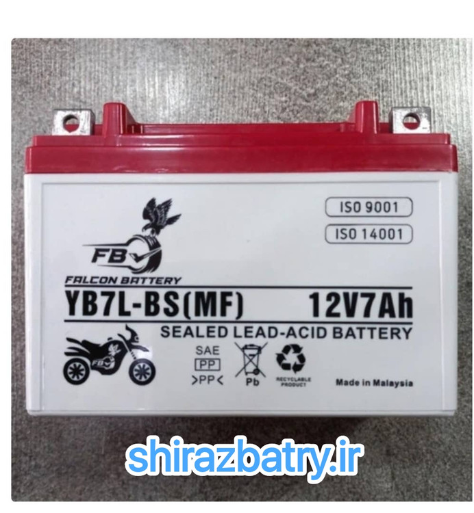 باتری موتور سیکلت ۷ آمپر کوتاه تاریخ تولید ۲۰۲۴ میلادی ساخت کشور مالزی کمپانی معروف فالکن